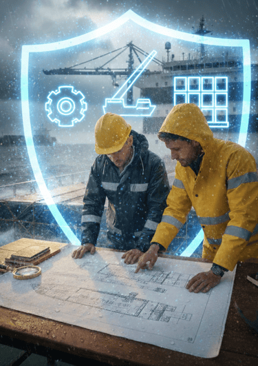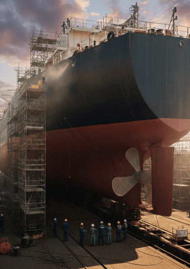 Maintenance and inspection services for vessels conducted at a dock or shipyard to ensure seaworthiness, safety, and regulatory compliance.